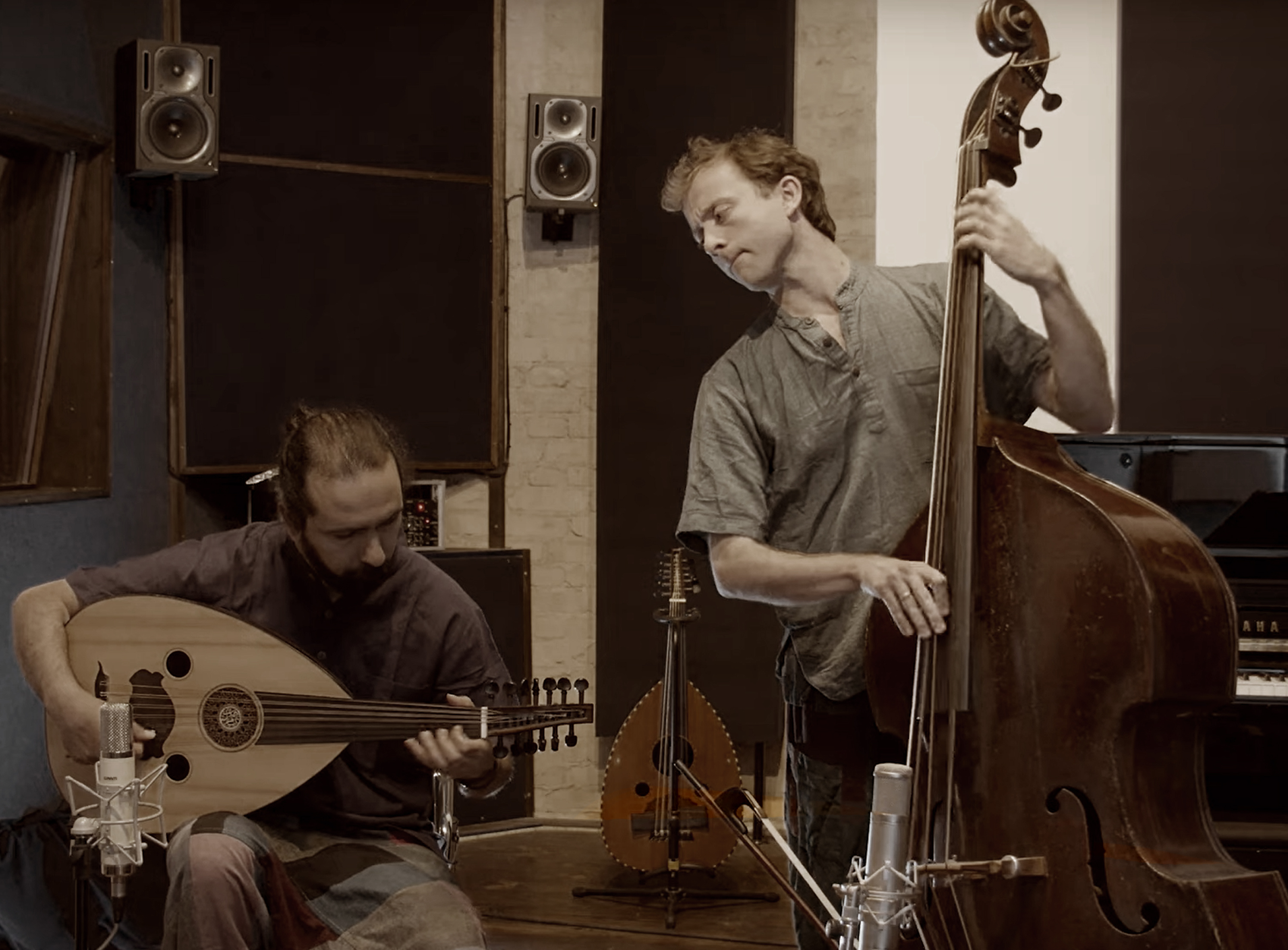 At the heart of Fadfada are Nabil Arbaain, an oud player hailing from Damascus, Syria, and Hans Bilger, a double bassist and oud player from Brooklyn, New York. The two met when Bilger, fascinated by the oud’s sound and history, enrolled in lessons at the Arabic Music Institute Berlin, found by Arbaain.